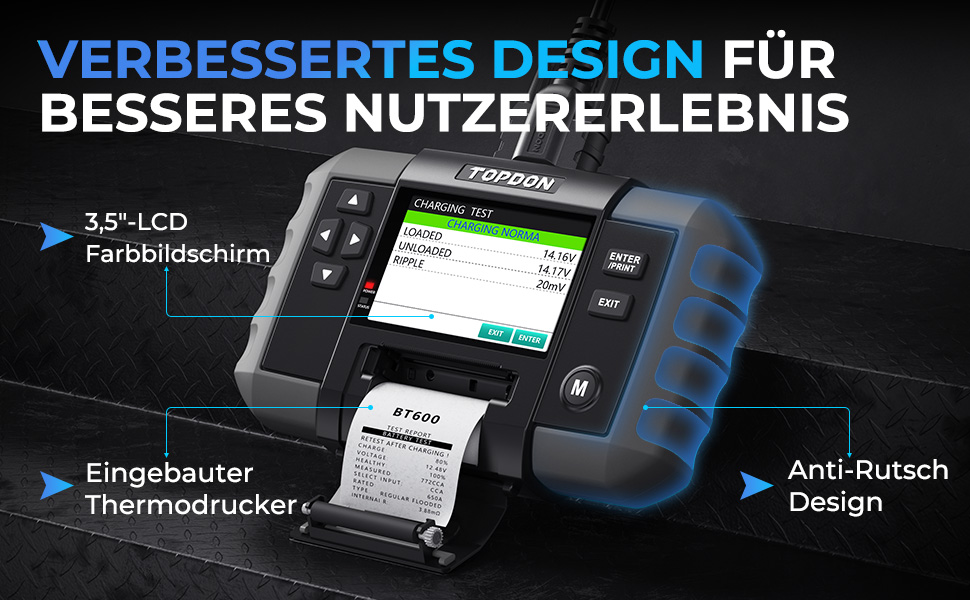 Topdon Bt600 Autobatterietester Batterietester Kfz Mit Drucker 12 V 24v 100 Bis 2000 Cca 3 5 Zoll Farbbildschirm 5 9 Fuss Kabel Mini Usb Fur Software Update Amazon De Auto Motorrad